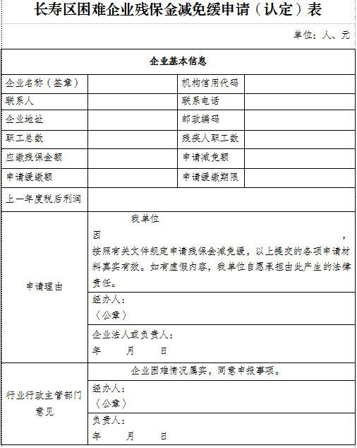 附件:《長壽區困難企業殘保金減免緩申請(認定)表》。