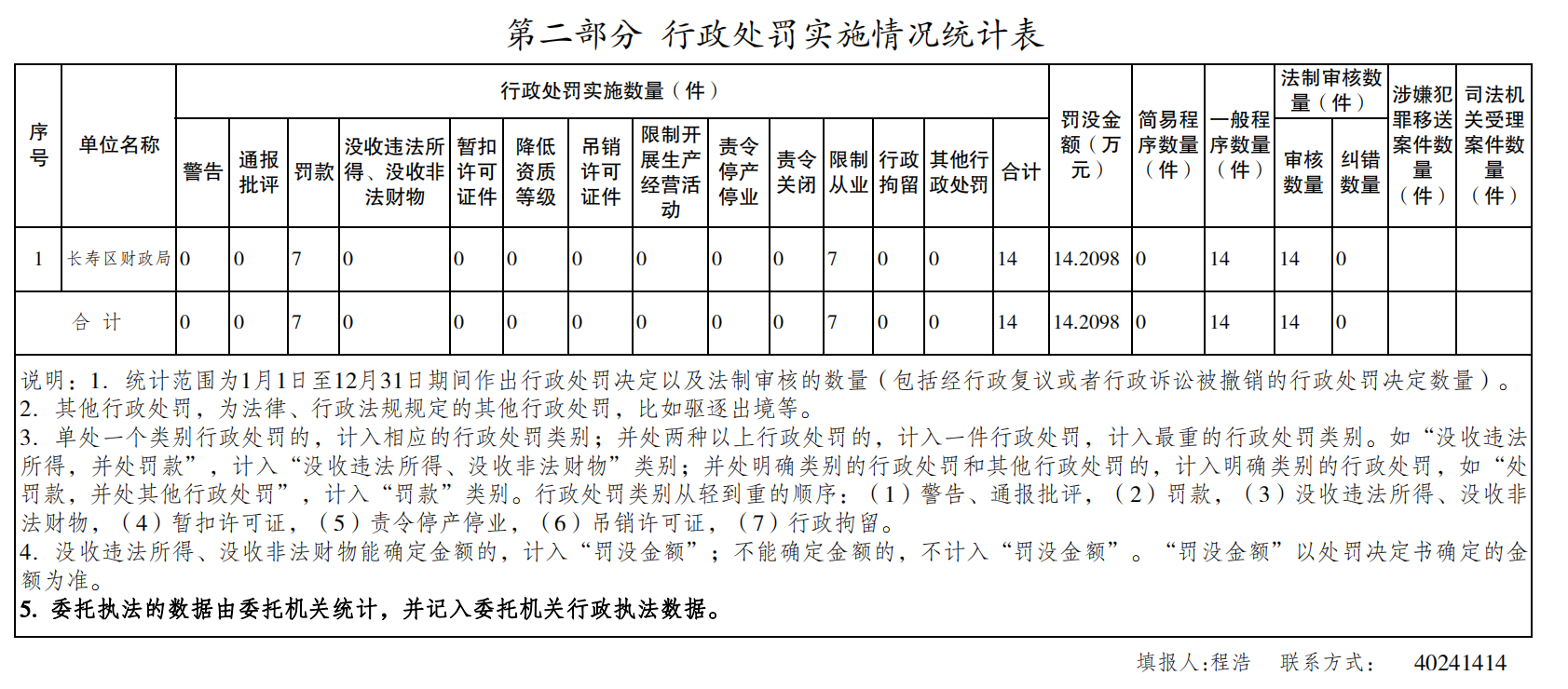 重慶市長壽區(qū)財政局2024年度行政執(zhí)法數(shù)據(jù)公示